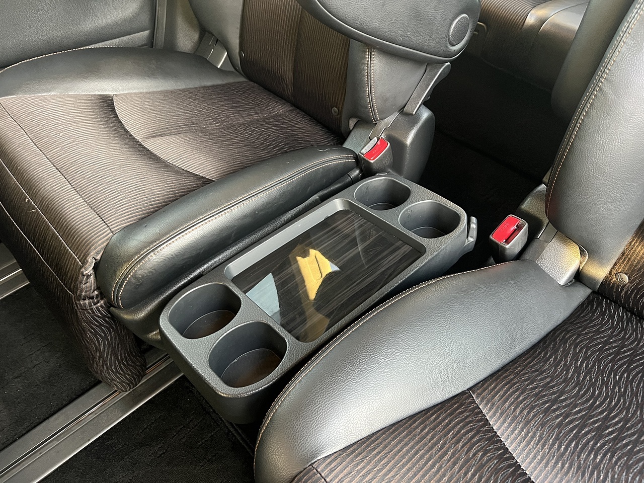 Inside, you’re greeted by a spacious, beautifully finished cabin featuring half-leather upholstery, soft-touch materials, and ambient lighting throughout. The captain-style middle-row seats recline, slide, and swivel — giving passengers the flexibility and comfort of a first-class lounge on wheels.